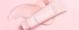 Několik ukázek produktů – krémů a hydratačních přípravků pro suchou pleť – na růžovém pozadí.